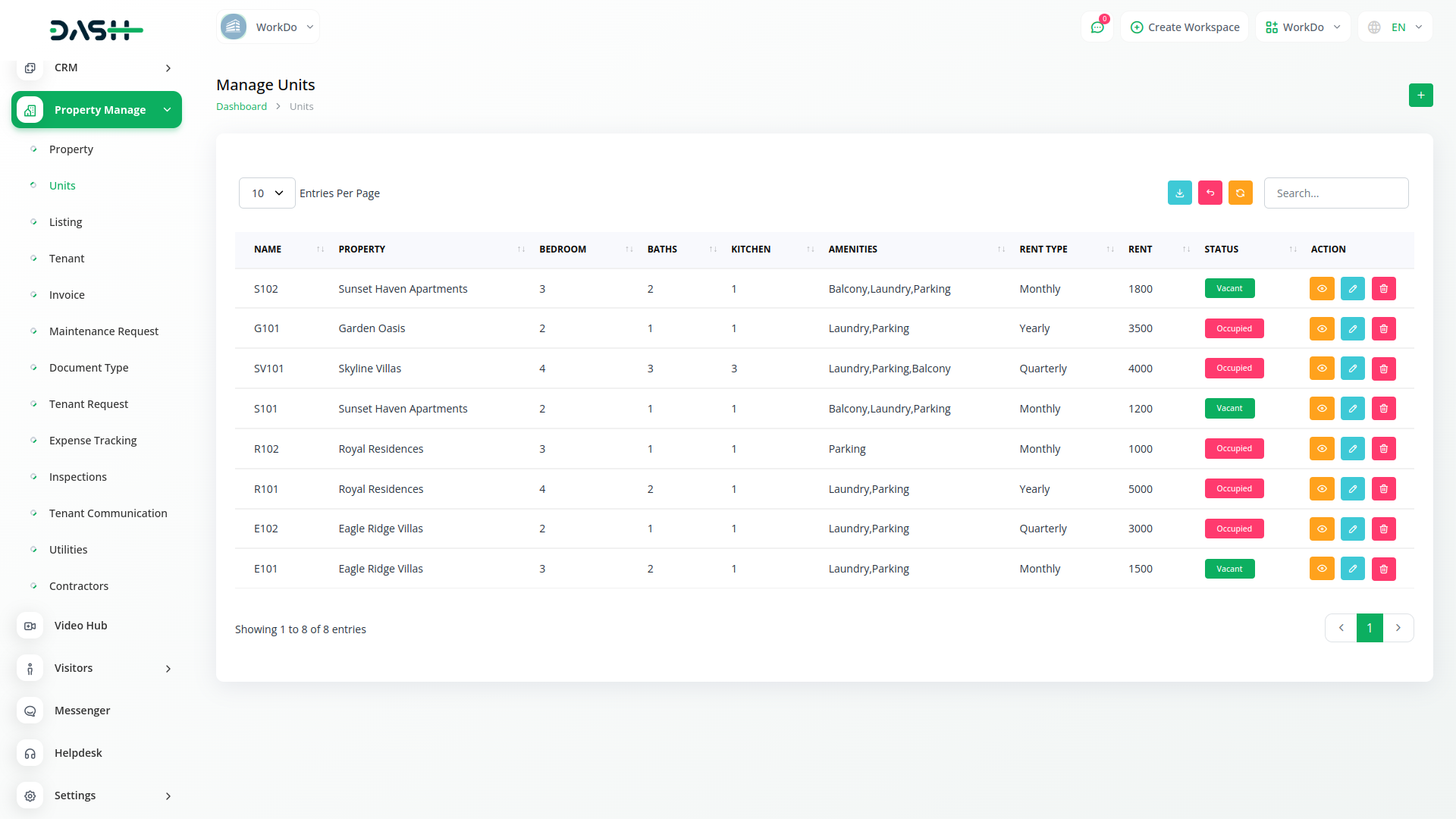 Modify and update your generated property management property units with ease. Add new property, unit and his details without stress. Property Management allows you to create and maintain the data of each tenant. You get access to all essential information through a well-maintained format.